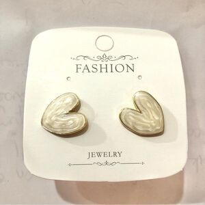 Add a touch of elegance to your look with these beautiful heart-shaped stud earrings. The white imitation pearls are set in a gold-plated metal, making them the perfect accessory for any occasion. The post closure ensures that the earrings stay securely in place, and their 1" length is just the right size for a subtle yet stunning effect.
