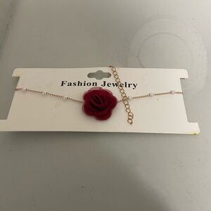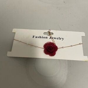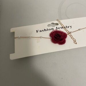 Elegant necklace featuring a striking red and black flower design. Perfect for adding a touch of sophistication to any outfit.