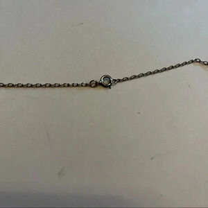 Lovely necklace with green stone. I don’t know what it’s made of but it’s silver in color. See all photos, it was gently used and may have some minor discoloration from time.