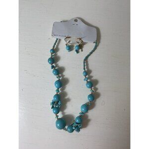 Fashion Jewelry Turquoise & Gold Beaded Necklace & Earrings Set