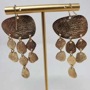Fashion Jewelry Women Gold Tone Dangle Textured Chandelier Earring