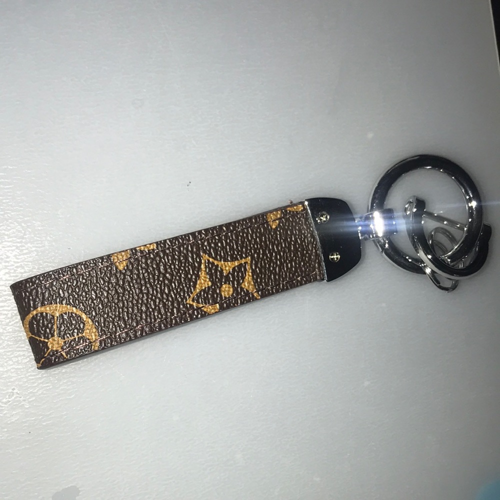 This is a leather keychain. Perfect for keys or whatever else you want to clip on. New and unused.