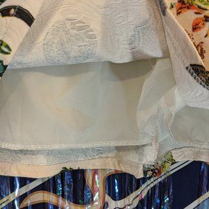 Ivory colored dress. Textured material with owl print. Sewn in lining. Zips on the back. In great condition. No flaws.