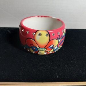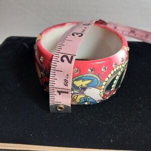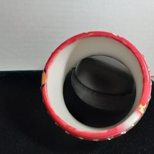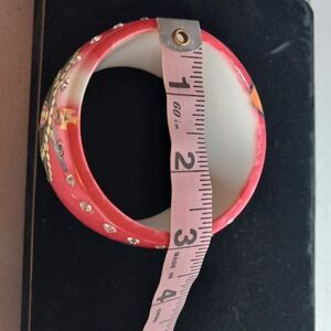 Rose color Resin/Plastic and Two rows of Rhinestones circling cuff
