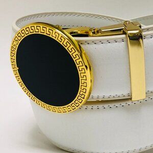 Fashion Leather Gold Slide White Men's Belt Automatic Buckle Jeans Dress Fashion