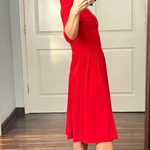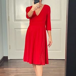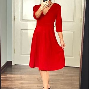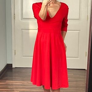 Elbows sleeves, zipper back, flare skirt , fitted bodice
