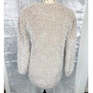 Fashion Minnie Mouse Sequin Fuzzy Eyelash Knit Crew Neck Sweater Size Medium. Cream / Beige / Tan in color. Pullover style. Long sleeves. Crew neckline. Fuzzy eyelash knit construction. Features a cute Minnie mouse sequin applique on the front. Perfect for adding a touch of Disney magic to your winter wardrobe and cozy enough to keep you warm. A must-have for any Disney fan!