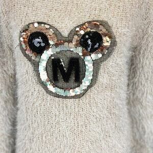Fashion Minnie Mouse Sequin Fuzzy Eyelash Knit Crew Neck Sweater Size Medium