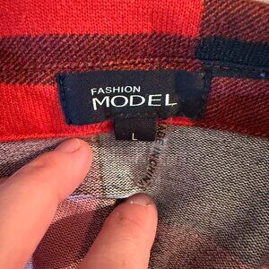 Fashion Model brand stretchy red & black plaid button-up. Women's size large, fits more like a medium, but stretchy.
