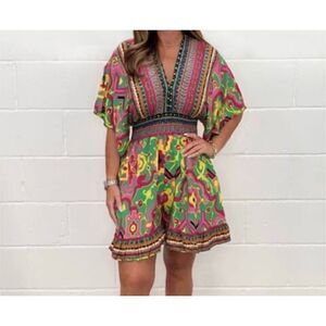 Fashion Multi Ruffle Leg Short Sleeve Romper Size Medium NEW