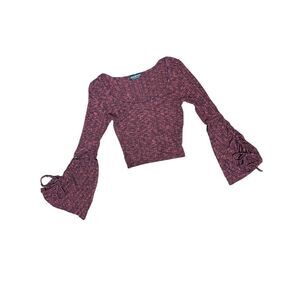 Fashion NOVA FLARE TIE SLEEVE CROPPED SWEATER RED BLACK MARLED KNIT