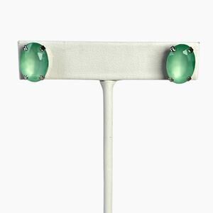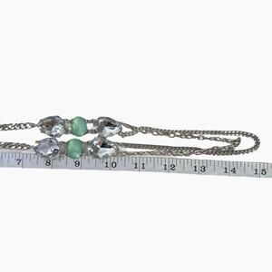 Fashion Necklace Earrings Set Large Clear And Frosted Green Stones Silver Tone