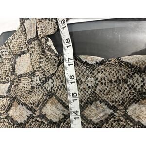 The Fashion Nora Snake print Top in size small is a stylish blouse designed for women. This top features a unique snake print pattern in multicolor, perfect for adding a trendy touch to any outfit. With a juniors size fit, this top is sure to be a fashionable choice for those looking to make a statement with their clothing.