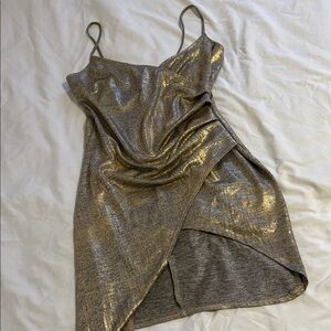 Fashion Nova Asymmetrical Gold Dress