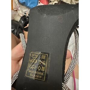 Fashion Nova Black 5" Heels Rhinestone Straps US Size 7.5