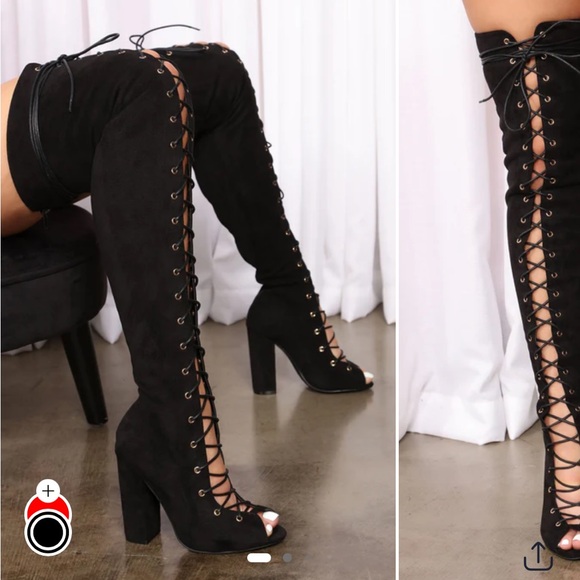 Fashion Nova Black Lace-Up High Heel Boots