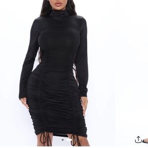 Chic black dress with long sleeves. Features stylish ruching. Ideal for any event. new, no tags. super sexy! new, no tags