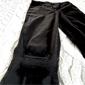 Chic black skinny jeans with stylish rips. Ideal for casual outings.
