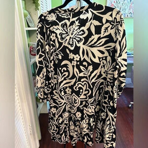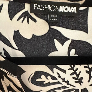 This eye-catching black and beige peplum blouse from Fashion Nova features a striking floral print that exudes sophistication and style. The blouse has a flattering V-neckline, button-down front, and soft, flowing fabric that drapes beautifully. The elasticized sleeves add comfort and structure, while the peplum hem provides a feminine and playful silhouette. Perfect for both casual and semi-formal occasions, this blouse pairs effortlessly with jeans or skirts, making it a versatile addition to your wardrobe.