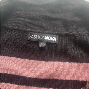 Chic sweater with bold black and pink stripes. Ideal for everyday style.
