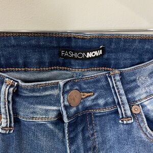 Fashion Nova Blue Distressed Skinny Jeans