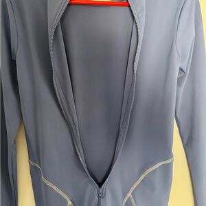 Chic blue bodysuit with long sleeves. Sleek design with subtle stitching.