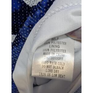 This Fashion Nova Blue Sequins Jersey Game Time Party Shirt Dress in size L is perfect for a night out or special occasion. The dress features a solid royal blue and white color with stretch sequins for a glamorous look. With 3/4 sleeves, a round neckline, and a pullover closure, this shirt dress is both stylish and practical. The dress is lined and has a unique game day theme with finer logos and 20 graphics, making it a standout piece in any woman's wardrobe. Hand-wash only to preserve the quality of this eye-catching garment.