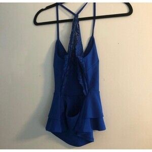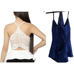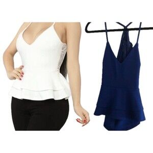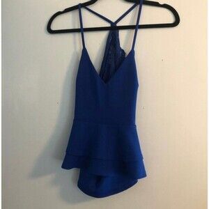 Fashion Nova Blue V Neck Spaghetti Straps Racerback Lace Back Peplum Top S