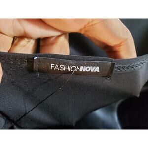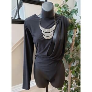 Fashion Nova Bodysuit Womens 1X Black Pleated One Shoulder Sleeve Cut Out Front