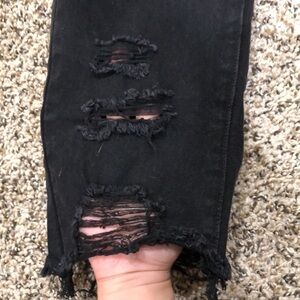 Fashion Nova Boyfriend Jeans Size 3 Black High Waisted Distressed Torn Up Ripped