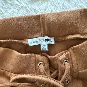 Fashion Nova Brown Faux Suede Lace-Up Flare Pants | Size 1X