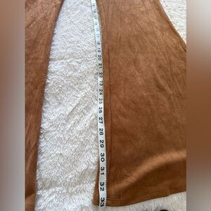 Trendy and ultra-flattering Fashion Nova faux suede pants in a rich caramel brown shade. These pants feature a lace-up front detail and a high-waisted flare leg, giving off a chic retro ’70s vibe. The soft suede-like fabric has plenty of stretch, making them both stylish and comfortable for day or night looks.