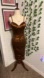 Elegant brown midi dress. Features a fitted silhouette and spaghetti straps. Perfect for evening wear.
