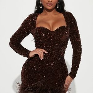 Step into the spotlight with this dazzling brown sequin dress from Fashion Nova, perfect for a cocktail night out. The bodycon fit accentuates your curves, while the long sleeves and sweetheart neckline add a touch of elegance. Crafted from shimmering sequins, this dress ensures you make a glamorous entrance.