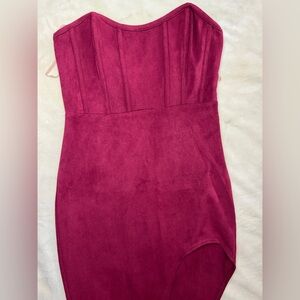 Chic strapless dress in a deep wine color. Perfect for elegant evenings.