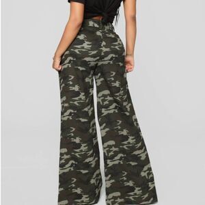 Fashion Nova Camouflage Snao Button Sides High waist Bell Bottom Cotton Pants XS