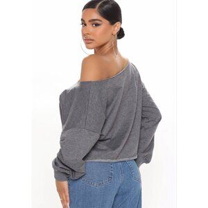The relaxed cropped fit makes it perfect for layering or styling solo, while the off‑shoulder neckline adds a flirty edge.