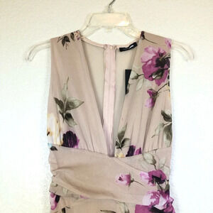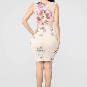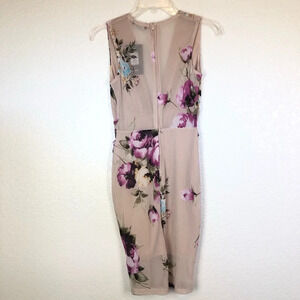 Fashion Nova Caught the Bouquet Floral Midi Bodycon Dress Taupe Size Medium New with Tags