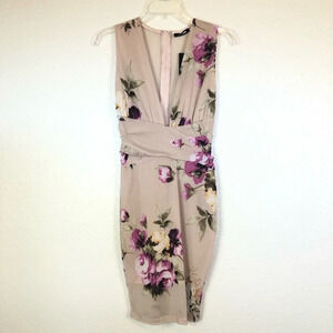 Fashion Nova Caught the Bouquet Floral Midi Bodycon Dress Taupe Size Medium