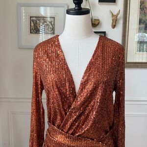 Fashion Nova Center Stage Sequin Mini Dress Bronze L