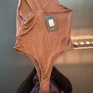 Fashion Nova Chocolate Brown One-Shoulder Top