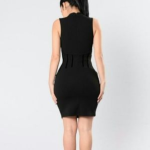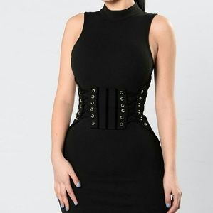 This dress is super sexy and on trend. The corset makes your waist look slimmer and the material stretches and fits over your curves like a body-con dress. Kinda has a sexy dominatrix feel to it. Choker neckline.
