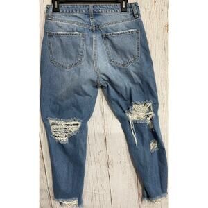 Fashion Nova Cropped Jeans Junior 5 Blue Denim Distressed Ripped 100% Cotton