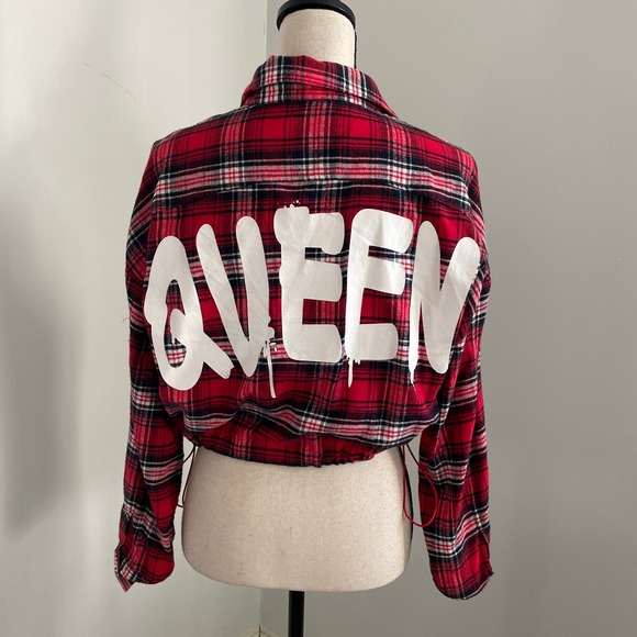 Keywords: Fashion Nova, cropped flannel, red plaid shirt, queen graphic tee, button down shirt, womens flannel, long sleeve shirt, drawstring hem, streetwear, casual top, oversized shirt, trendy fashion, fall fashion, winter fashion, graphic flannel, #90s #y2k #hipster #trendy #cropped #streetwear #queen #flannel #plaid