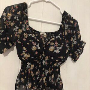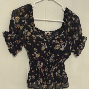 Fashion Nova Cropped black floral short puff sleeve peplum top
