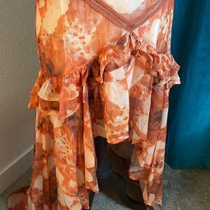 Fashion Nova Daisy High Low Maxi Dress - Orange/combo | size M | NWT