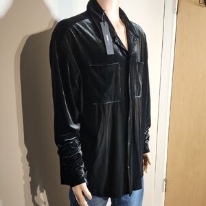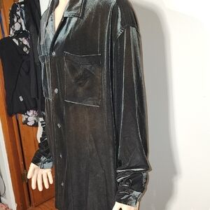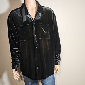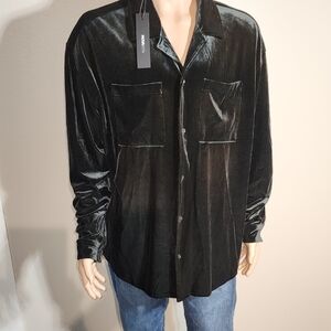 Fashion Nova Dark Velvet Casual Button Down Shirt