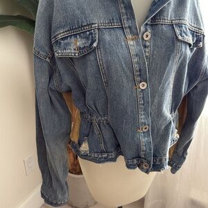 Adjustable cinching at the waist giving your body shape and making this denim jacket a very flattering fit.