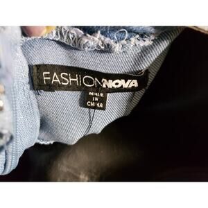 Fashion Nova Denim Jumpsuit Womens Medium Blue Plunging Neck Crisscross Front