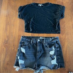 Fashion Nova Denim Shorts & Mix + Match Capsule Wardrobe Outfit Bundle – Size M